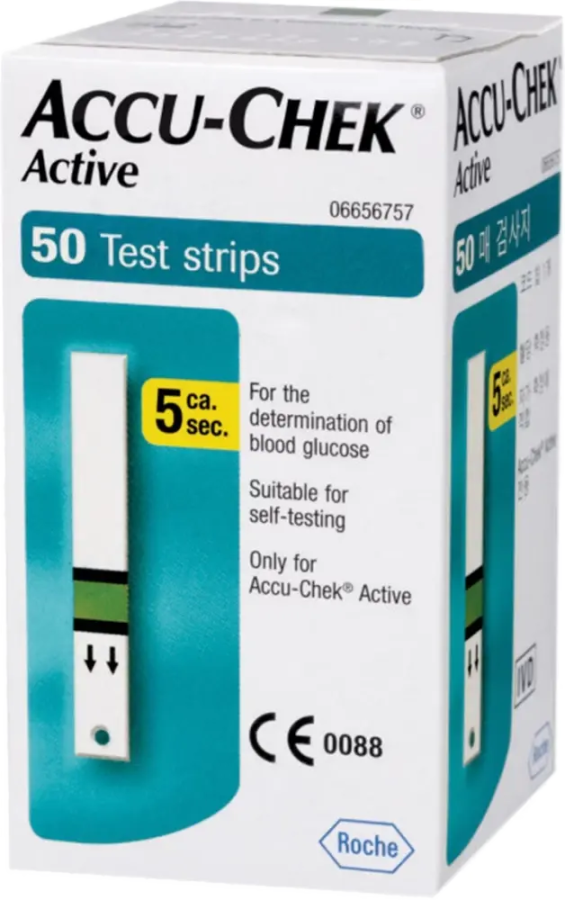 Teststrēmeles glikozes noteikšanai asinīs Accu-Chek Active.