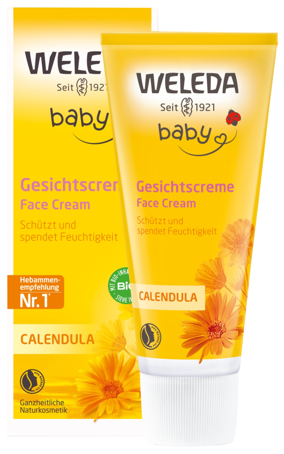Bērniņam ienākot pasaulē, viņam ir ļoti daudz jāapgūst - tas attiecas arī uz mazuļa ādu. Zīdaiņa āda ir piecas reizes plānāka nekā pieauguša cilvēka āda, un tā daudz biežāk zaudē mitrumu, tādēļ mazuļa ādai nepieciešama dabiska palīdzība. Bioloģiski audzēto kliņģerīšu ekstrakts izveido aizsargslāni uz mazuļu maigās sejas ādas, savukārt ādai draudzīgais lanolīns un mandeļu eļļa mitrina ādu. Viegli lietojams un ātri iesūcas sejas ādā. Māmiņas un vecmātes uzticas Weleda produktiem, kas ievieš dabas harmoniju mazuļu kopšanā.