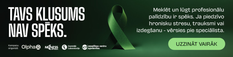 Katrs trešais Latvijas vīrietis vecumā no 18 līdz 74 gadiem savu mentālo veselību vērtē kā sliktu vai ļoti sliktu, liecina aģentūras "Norstat Latvija" veiktā sabiedriskās domas aptauja. Tajā pašā laikā 42% aptaujāto uzskata, ka ar mentālās veselības problēmām vīrietim jātiek galā pašam. Savukārt 25% respondentu atklāj, ka nemaz nezina, pie kā vērsties mentālu sarežģījumu gadījumā. Lai aktualizētu mentālās veselības nozīmi sabiedrībā, īpaši izgaismojot šo problemātiku vīriešu vidū, Latvijas zāļu ražotājs “Olpha”, “Centrālā laboratorija”, “Veselības centru apvienība” un “Mēness aptieka” no 18. februāra līdz 16. martam īsteno sociālo kampaņu par vīriešu mentālo veselību “Tavs klusums nav spēks”.